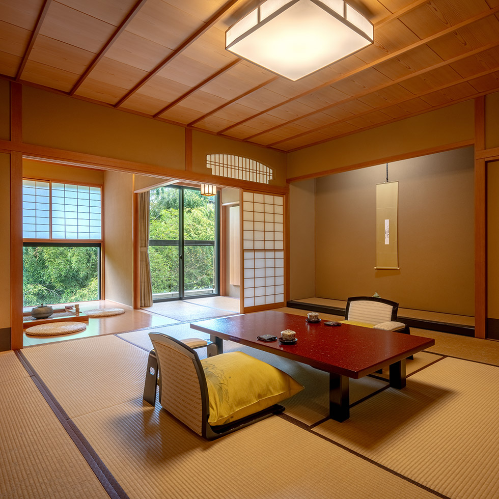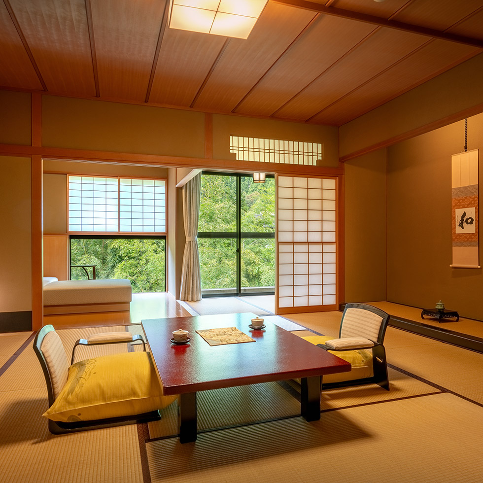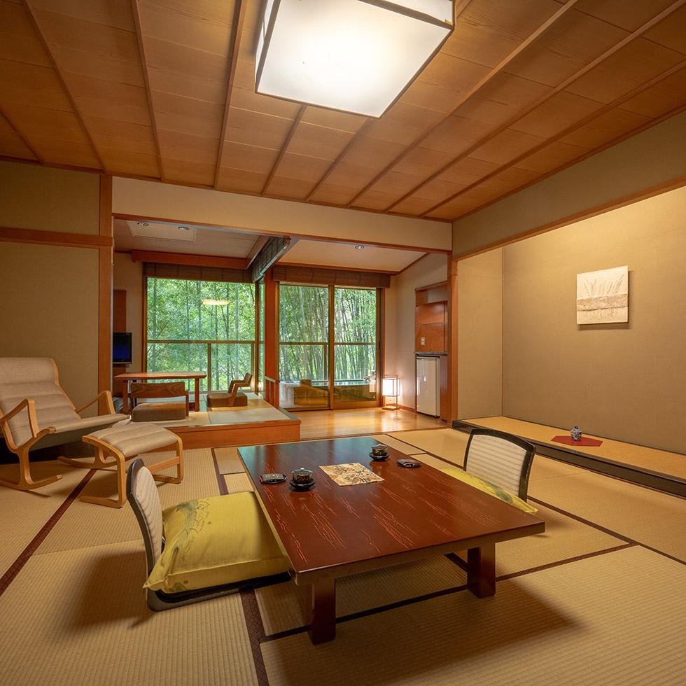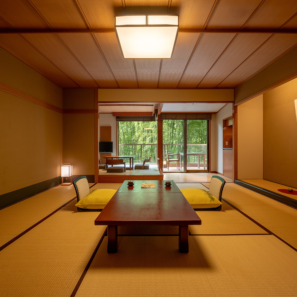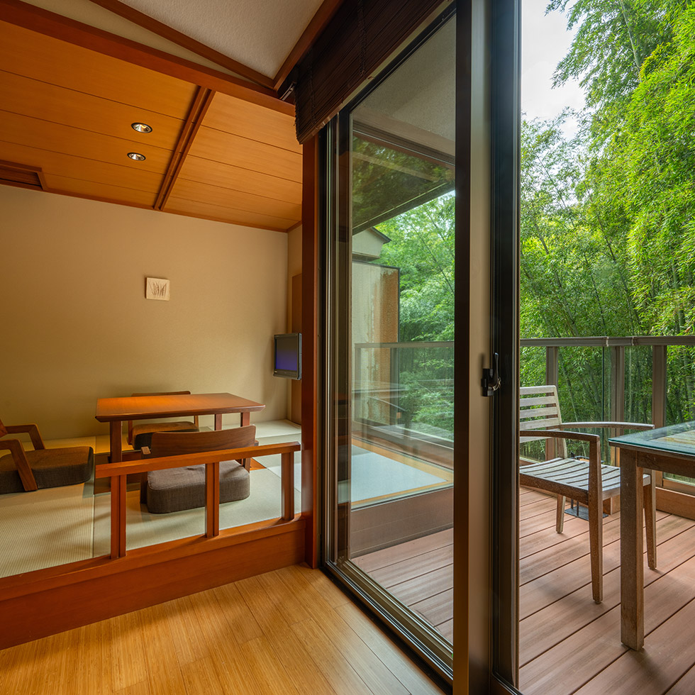 渓流と竹林に最も近い1F客室が、テラス付和室となっております。