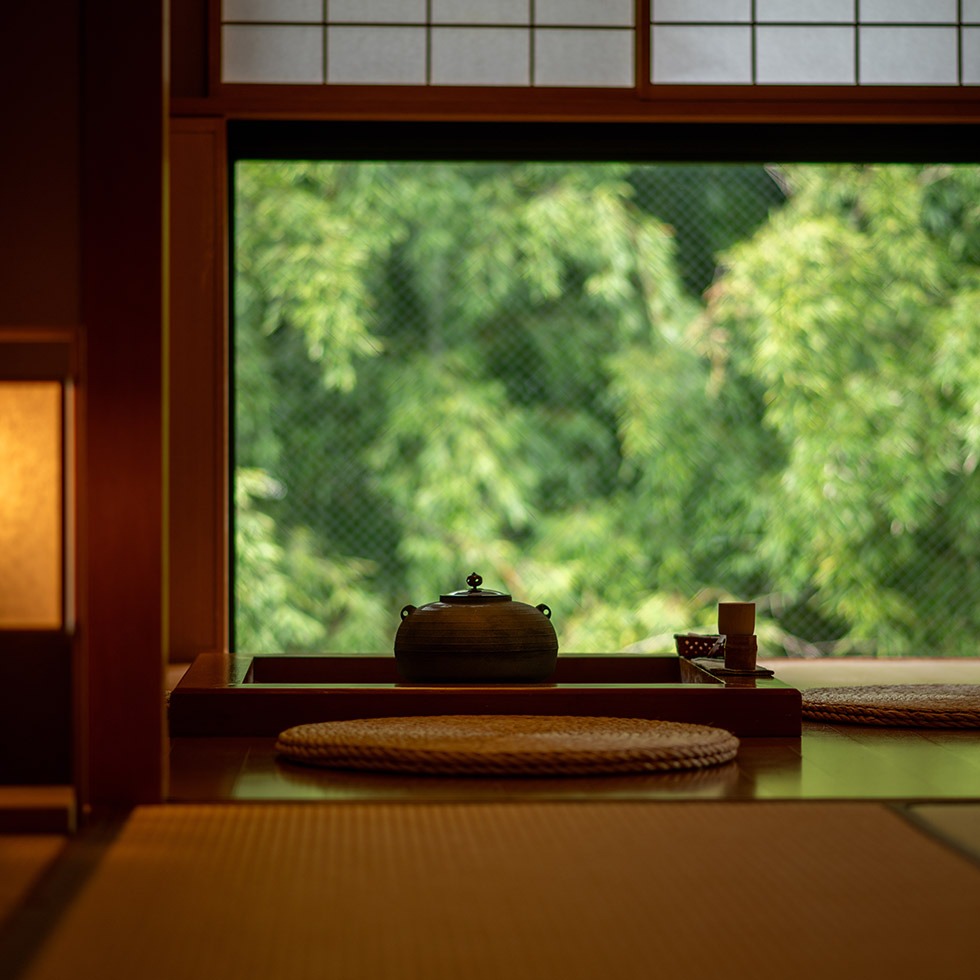 竹林の緑を眺めながらいただく一杯のお茶とともに、のんびりとお過ごしください。