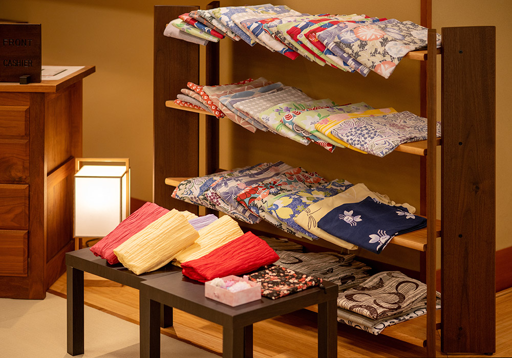 浴衣は、フロントにてお好きな色柄のものをお選びください。