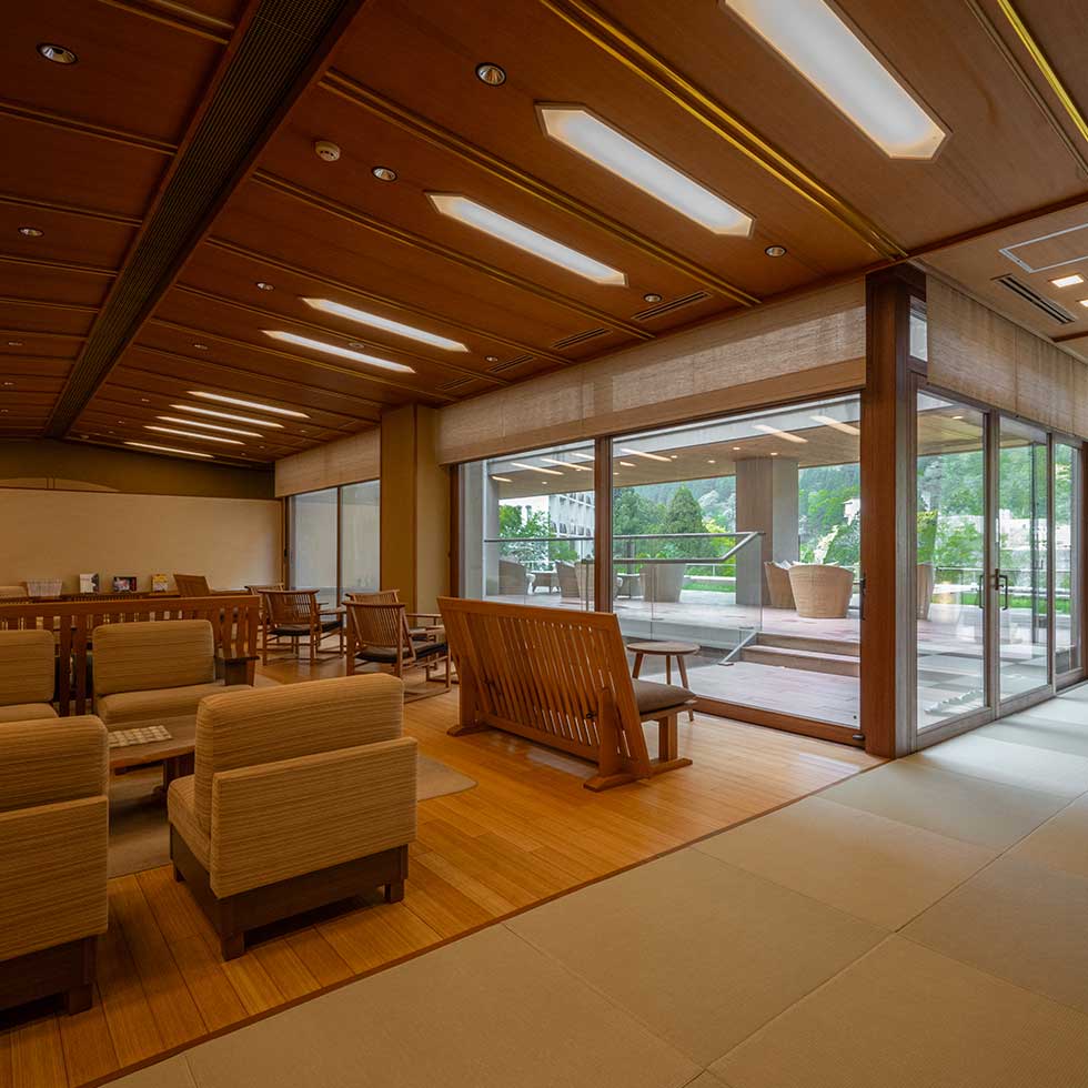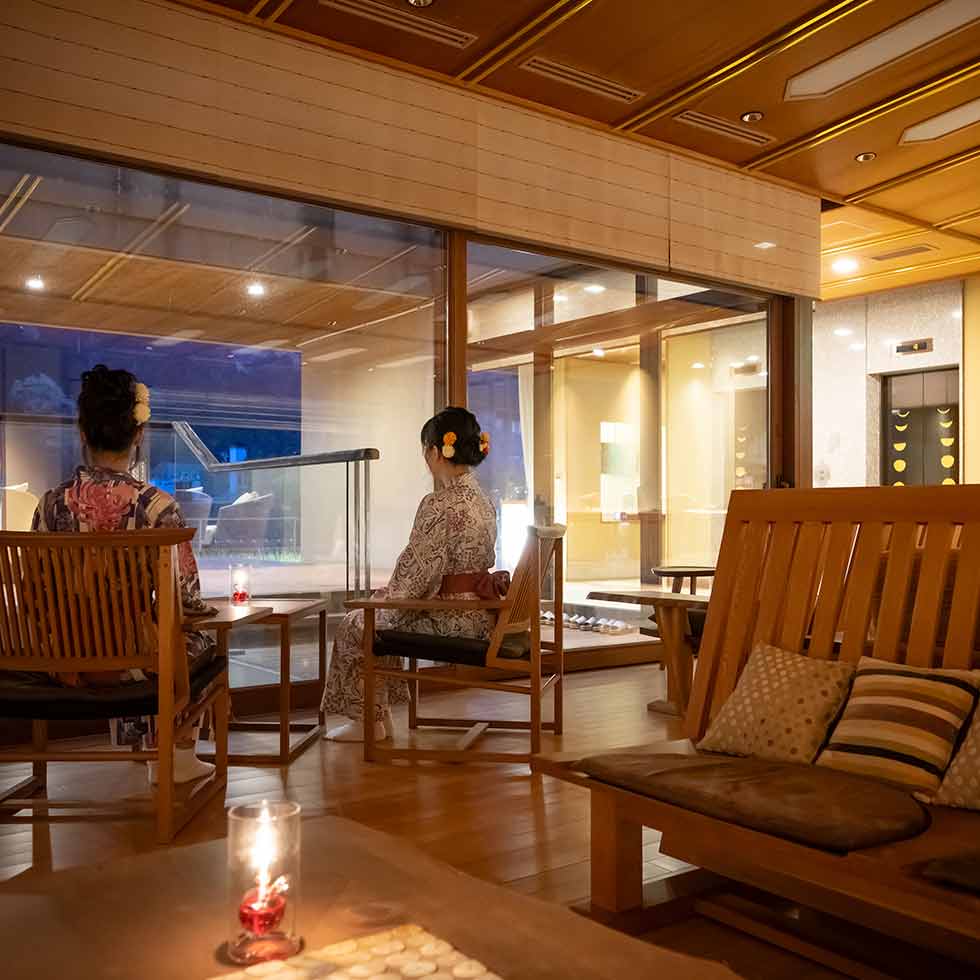ロビーのソファーもゆったり大きく、お客様に少しでもゆっくりした気持ちになっていだけるように、厳選しております。