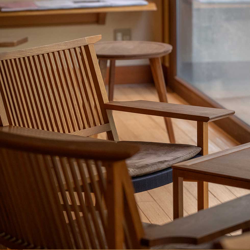 多くの家具は、飛騨高山の作家に製作いただいた木製の家具です。