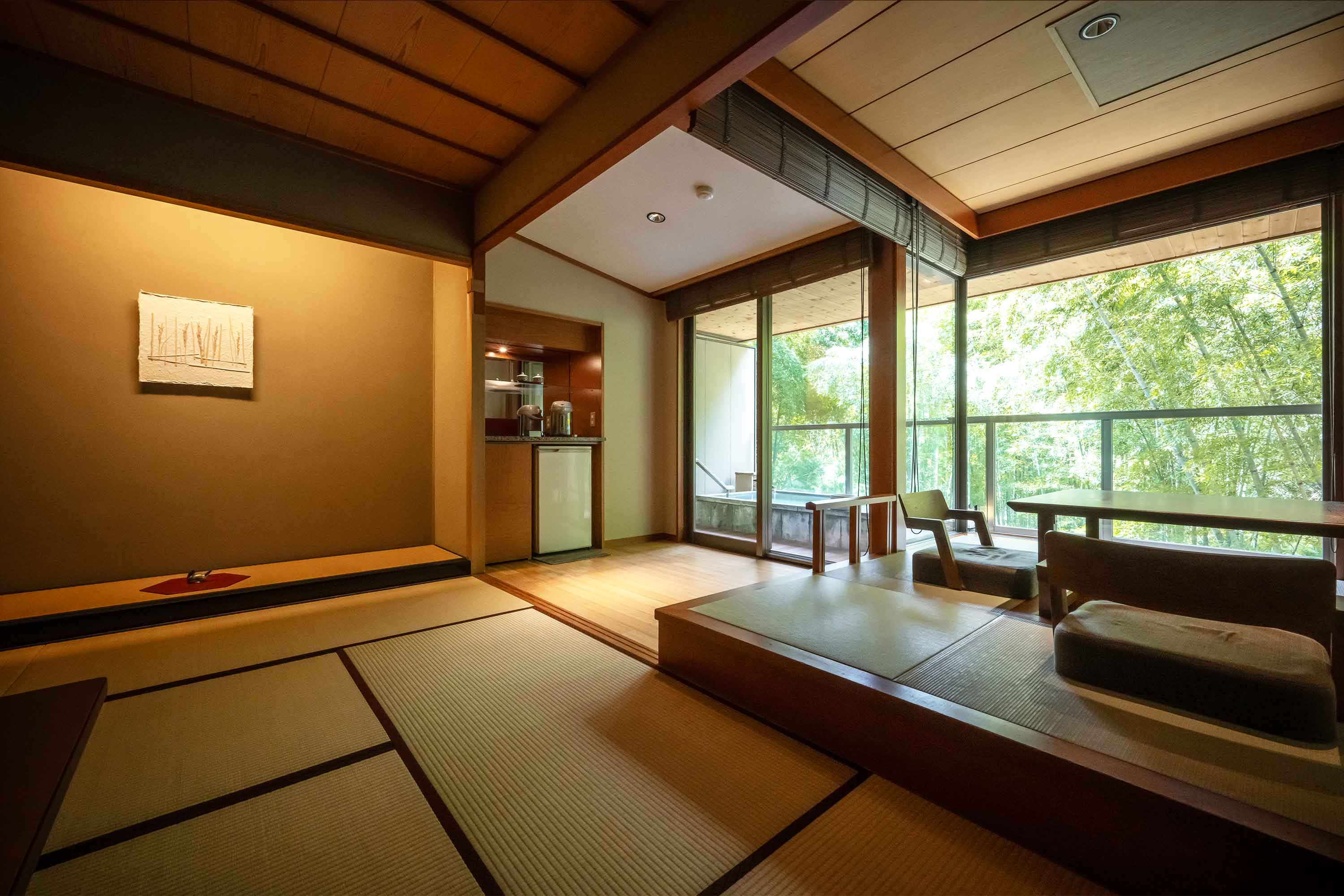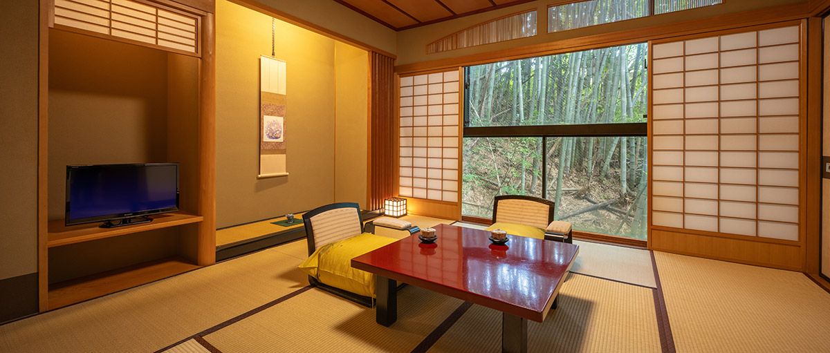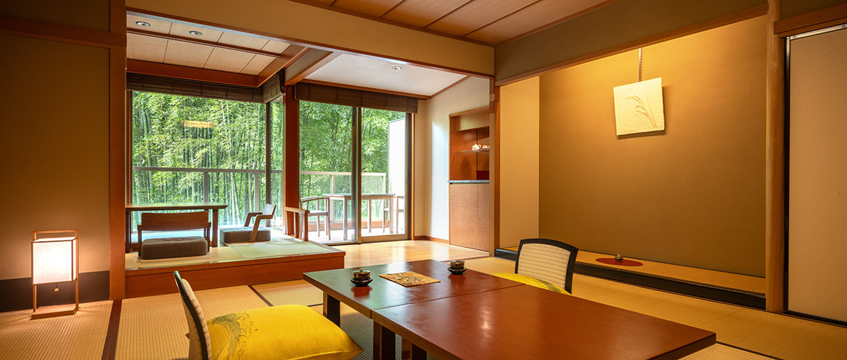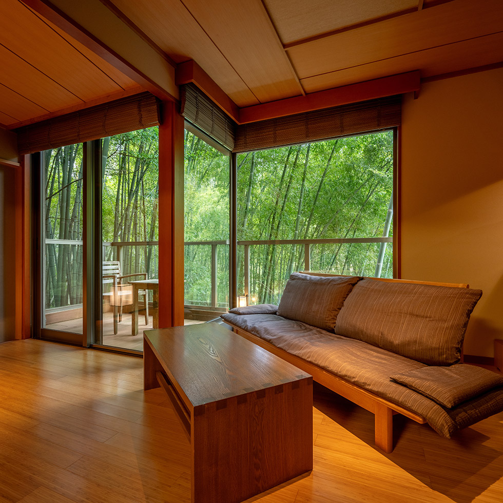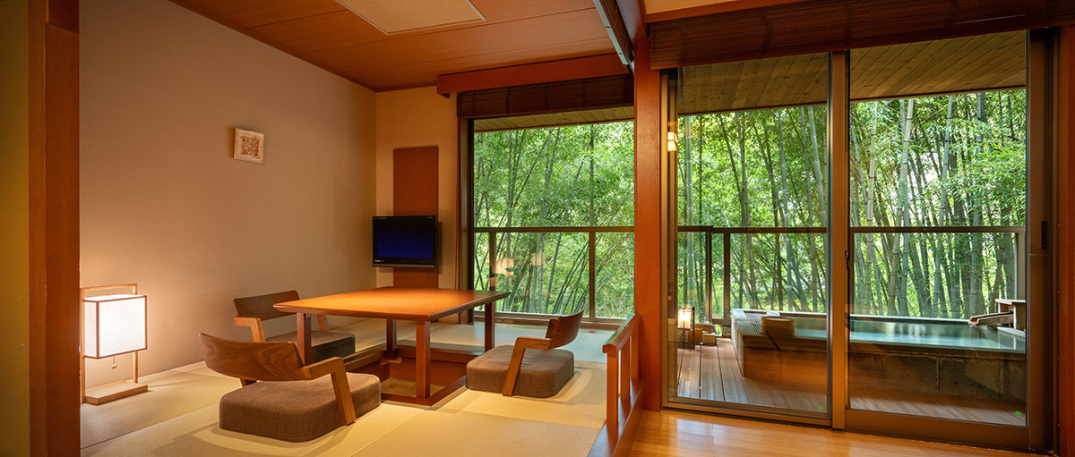 渓流と竹林に最も近い1F客室が、テラス付和室となっております。