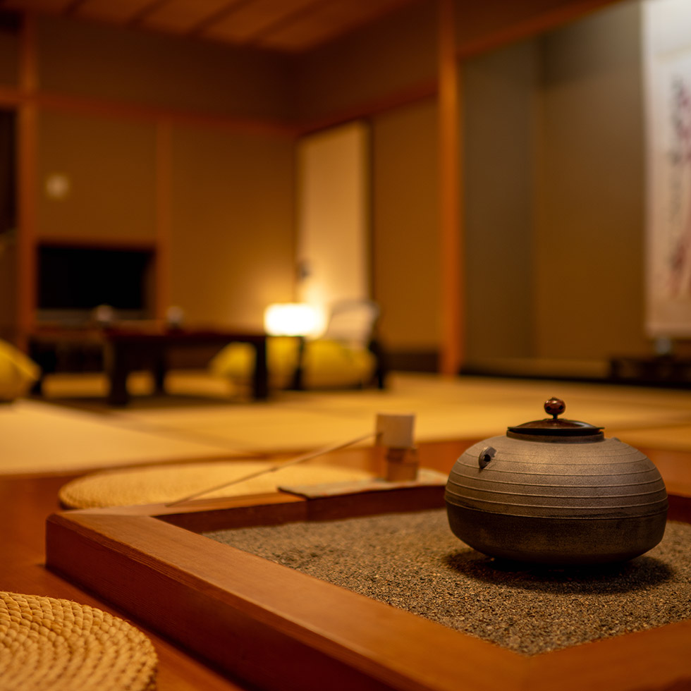 囲炉裏を囲んで、ゆったりとくつろいで頂けるお部屋です。